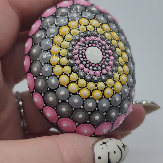 Celina Miller Art - Pink and Yellow Mandala Stone