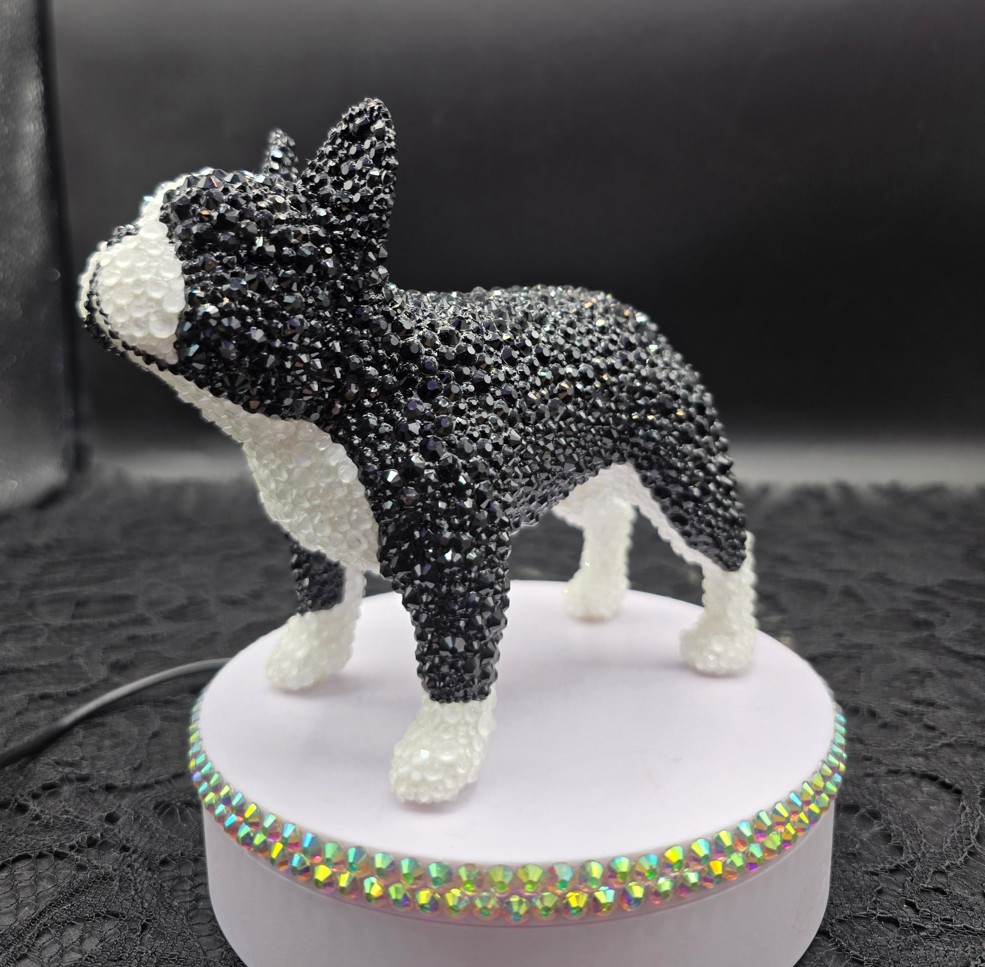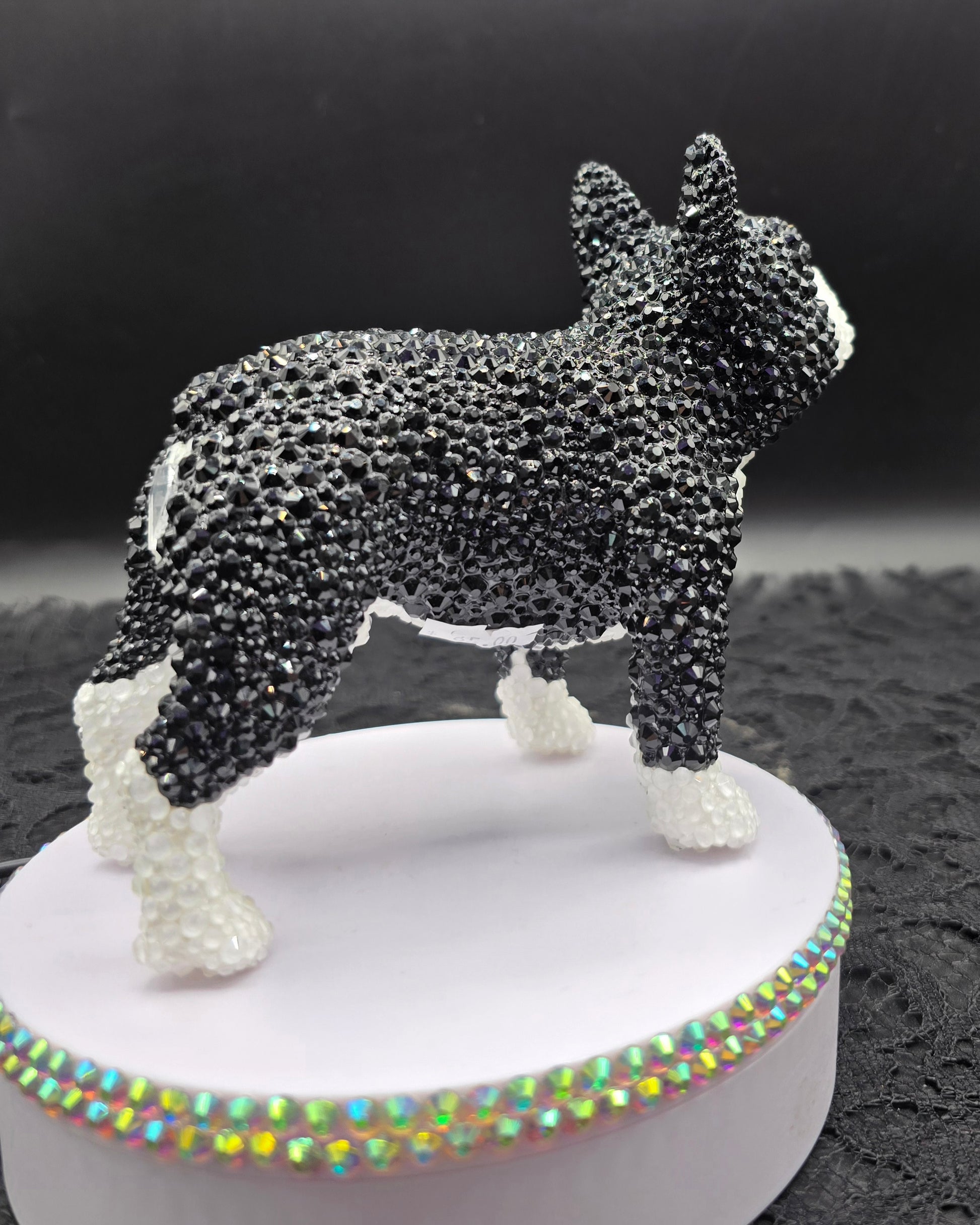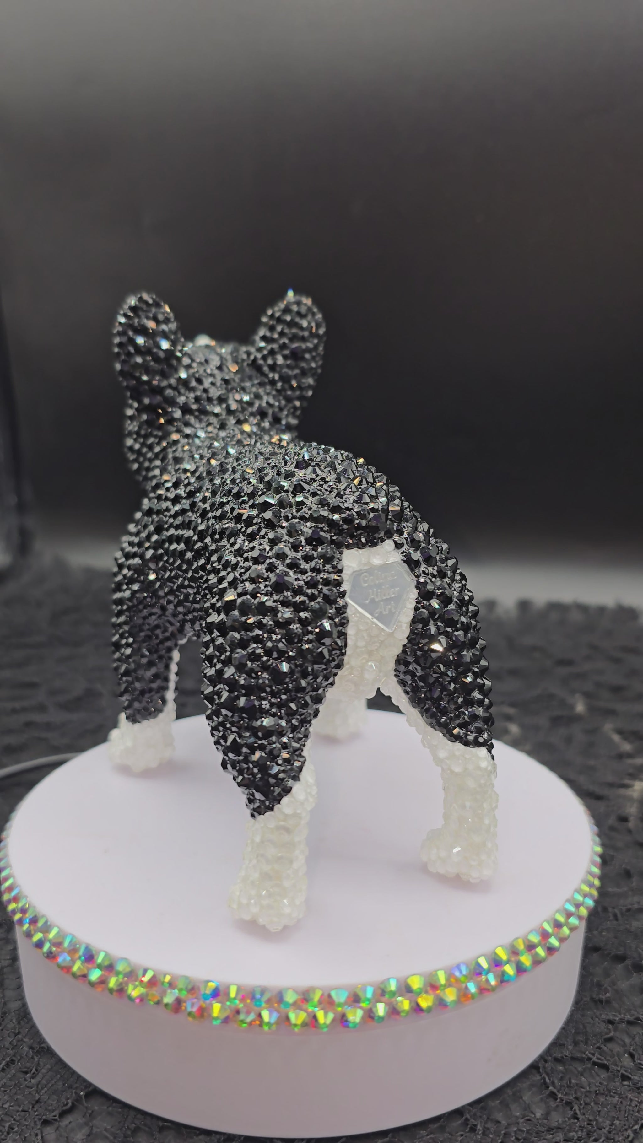 This hand painted, 3d printed French bulldog, magical, absolutely adorable in full bling. High quality glass rhinestones applied after being hand painted. This French bulldog is perfect and will listen to you, unlike real French bulldogs.