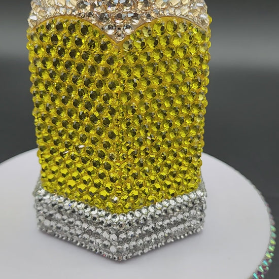 This hand made 3D printed adorable pencil shaped pencil holder, hand painted and then hand placed high quality glass rhinestones one at a time.