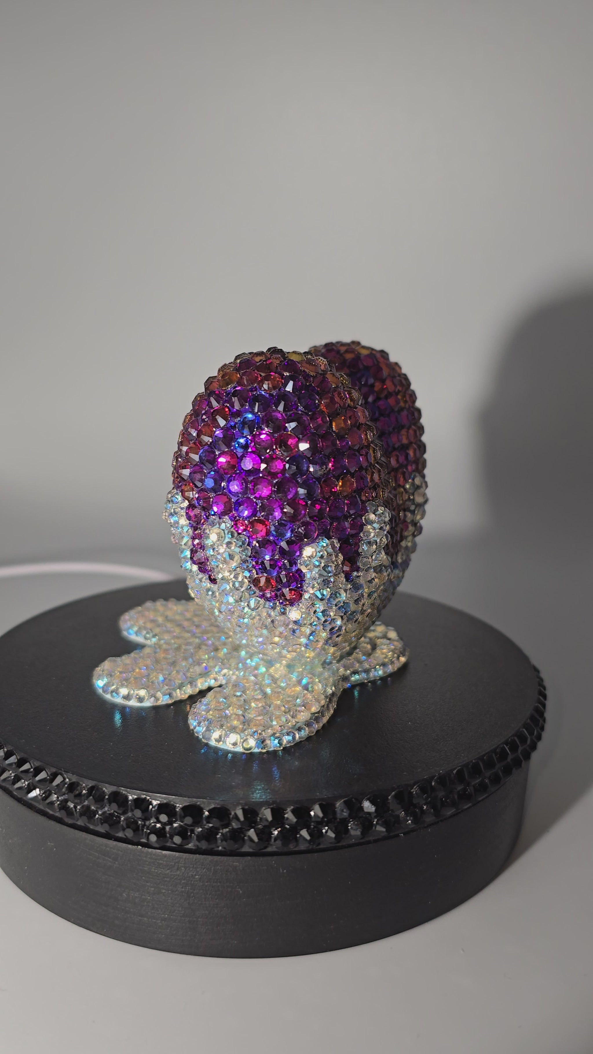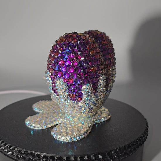 This handmade 3D printed heart dropped into Northern Lights paint, hand painted purple with high quality glass rhinestones attached one at a time. Heart looks like it was dropped into paint with gorgeous color shifting northern lights rhinestones