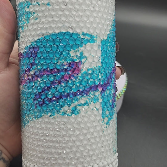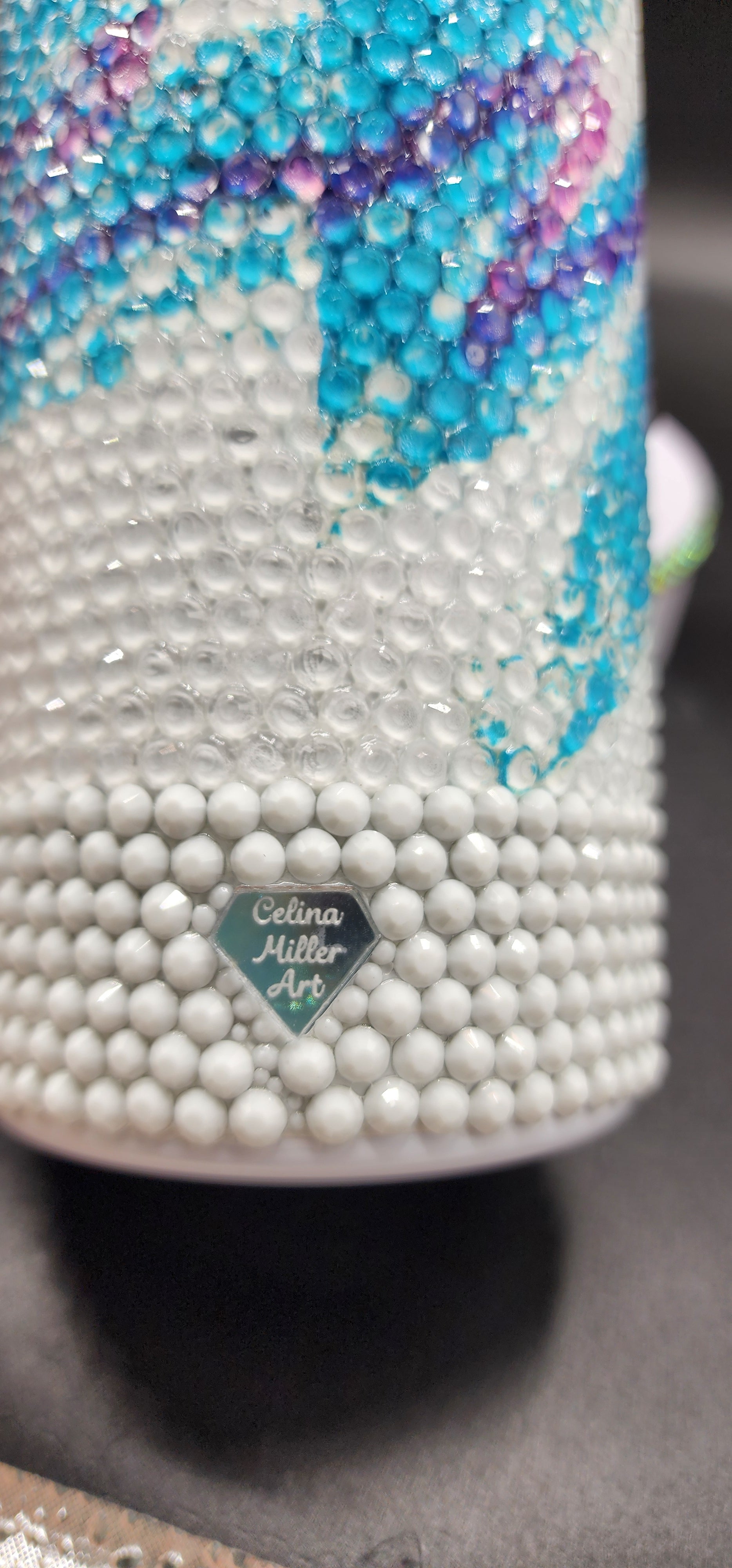 The tumblers are done lovingly, one single rhinestone at a time, they are a luxury item and take anywhere from 10-20 hours each one.