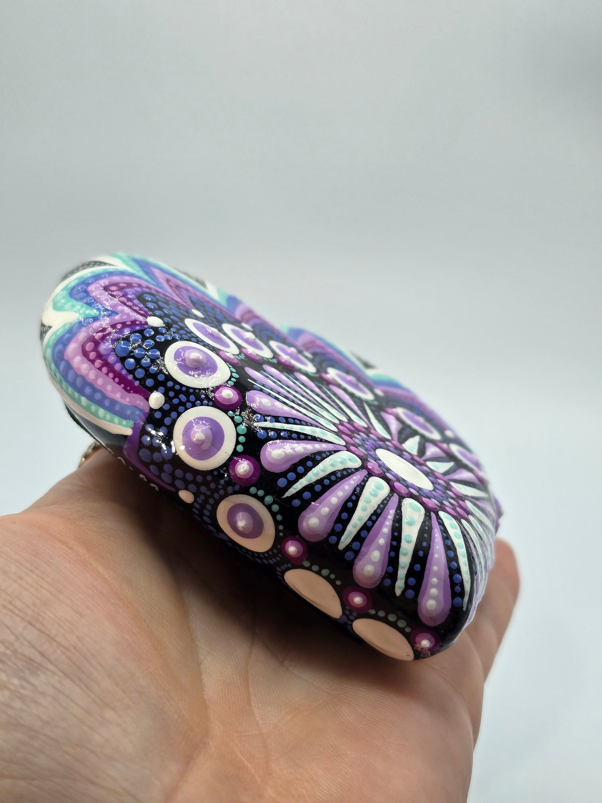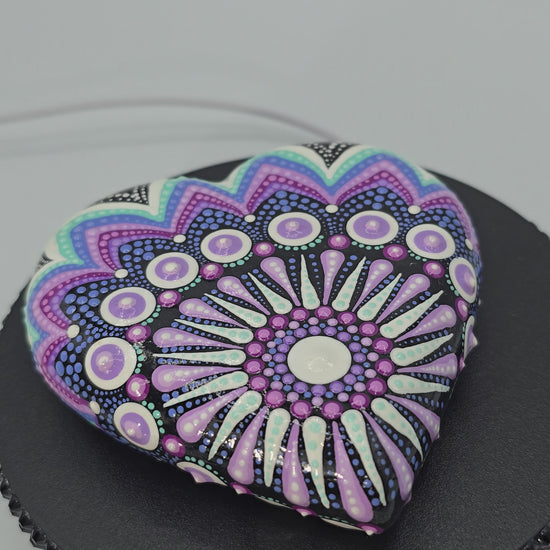 Celina Miller Art - Purple and Teal Mandala Heart Stone