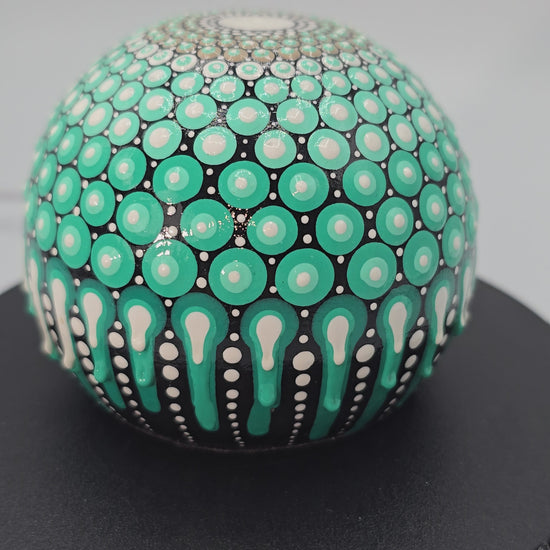 Celina Miller Art - Teal and White Mandala Sphere Stone