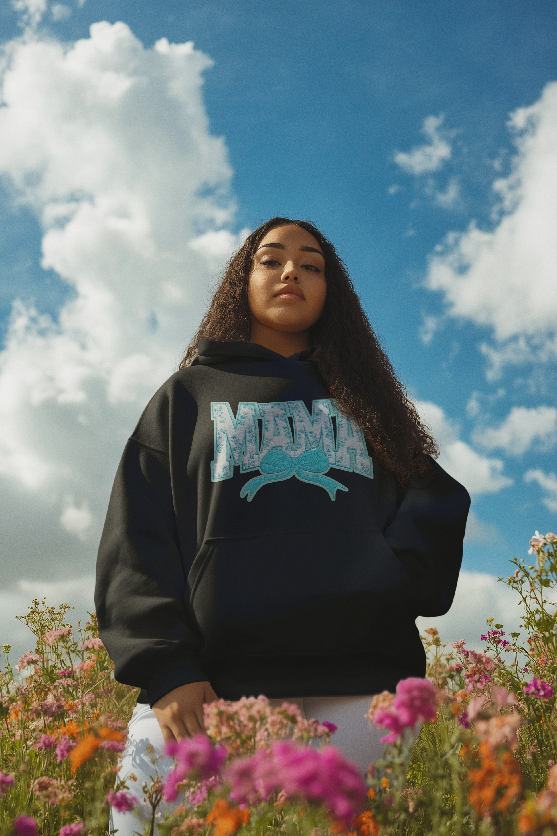 Teal Floral Mama Chenille Patch Hoodie